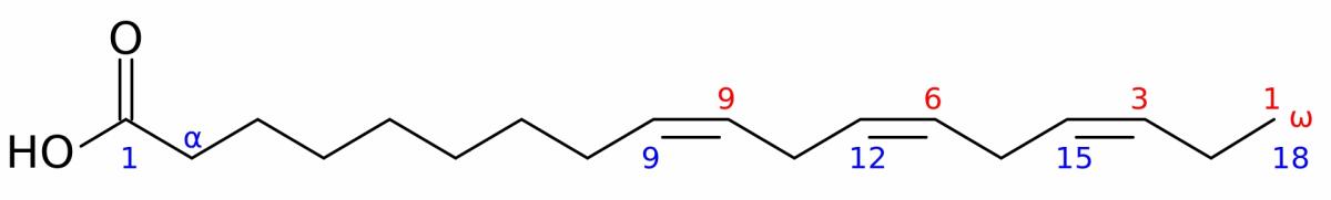 Название «Омега-3» означает, что ненасыщенная связь в структурной формуле жирной кислоты расположена возле третьего атома углерода, «Омега-6» — возле шестого по счету атома углерода, «Омега-9» — возле девятого атома углерода в структуре молекулы.