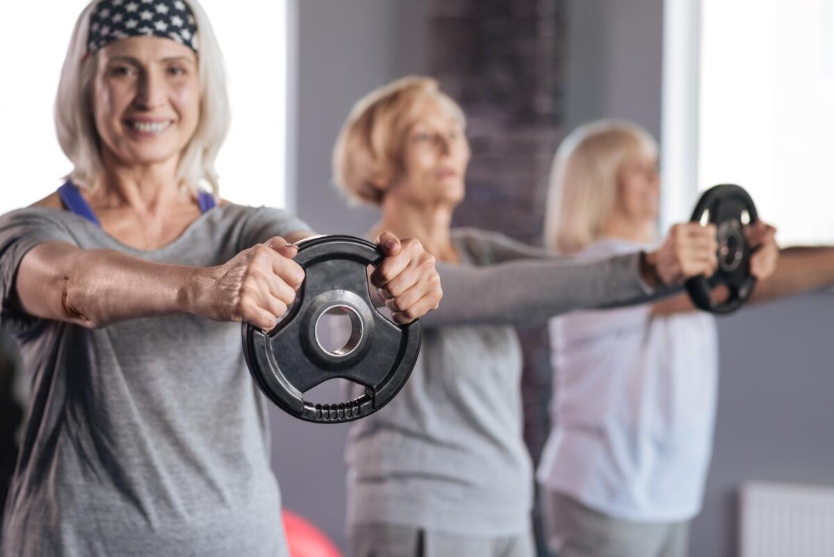 Силовая тренировка должна быть достаточно тяжелой, с использованием весов, работа с которыми требует серьезных усилий. Конечно, прогресс будет меньше, чем у молодых людей при той же нагрузке, тем не менее он есть. И результаты ощутимы уже в первые недели тренинга. При этом мы воздействуем на проблему прямо, «в лоб»: в ответ на уменьшение массы и силовых возможностей вынуждаем организм их увеличивать.