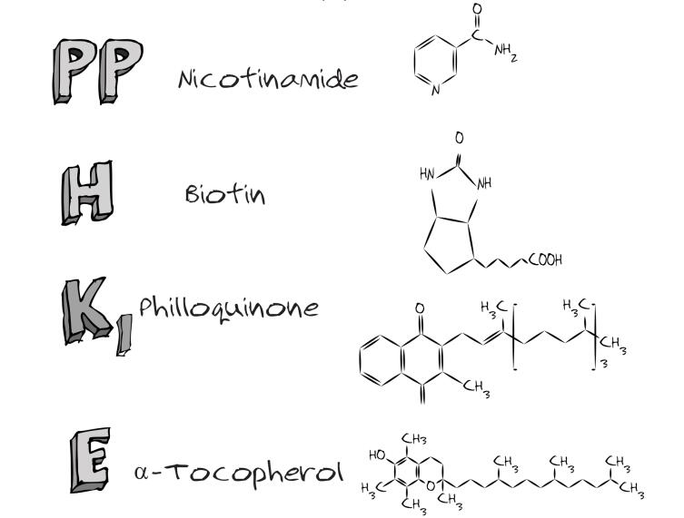 Биотин (Н) служит для улучшения регуляции обменных процессов в организме. Его нехватка чревата кожными проблемами (воспаления, шелушения), а также появлением анемии.