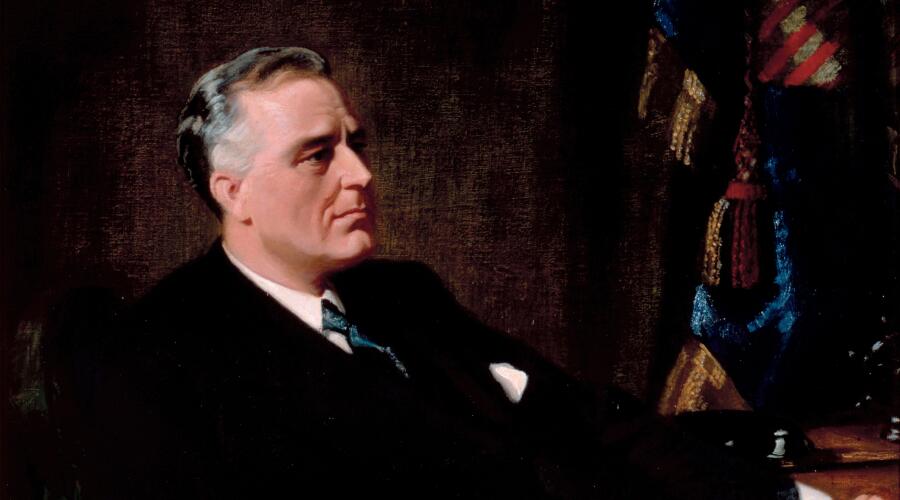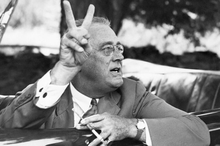 Франклин Делано Рузвельт (1882−1945 гг.), часто называемый по его инициалам ФДР, был 32-м президентом Соединенных Штатов с 1933 года вплоть до своей смерти в 1945 году.