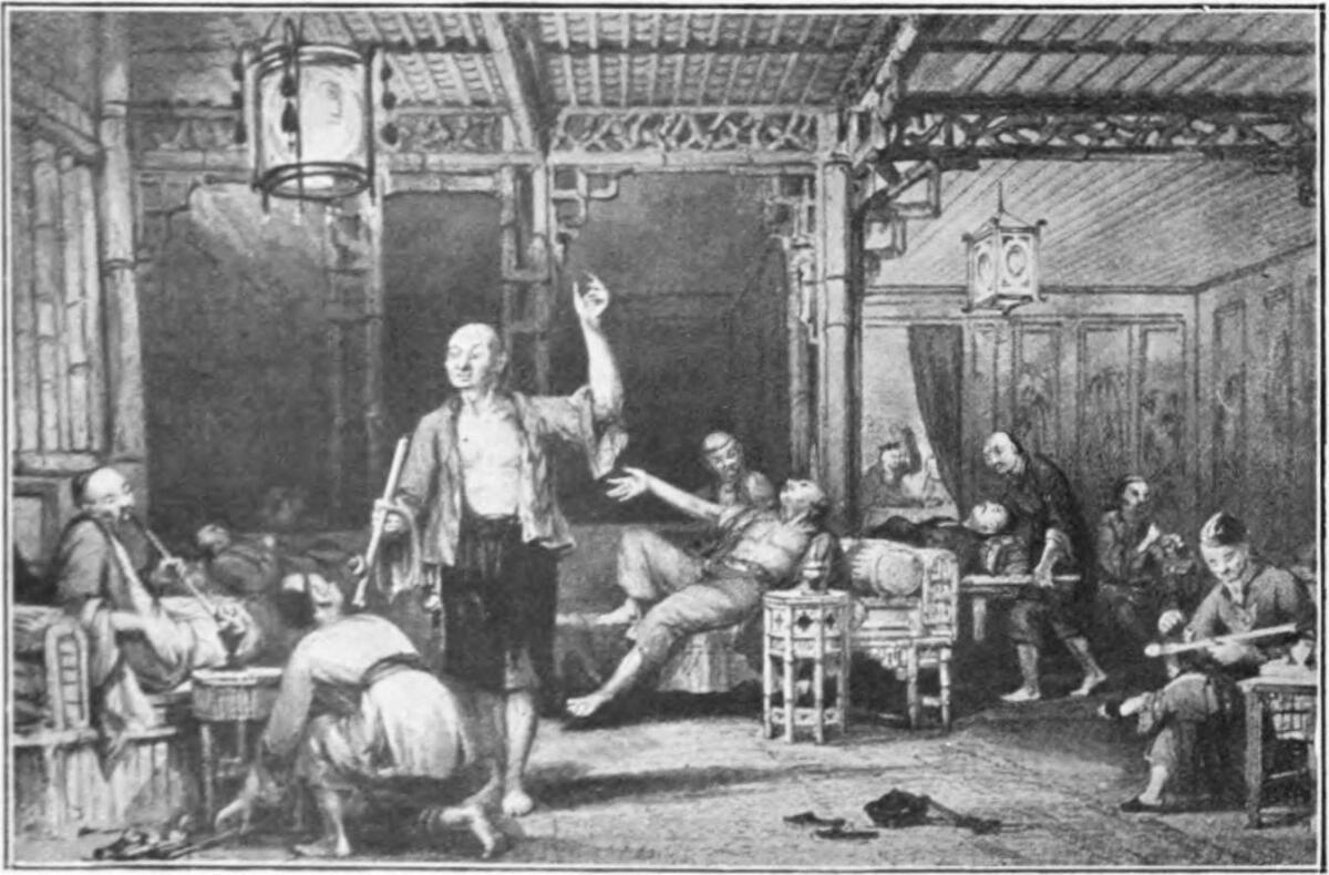 Речь, по-видимому, идет о демонстрации приемов знаменитого китайского боевого искусства кунг-фу, которое в то время было для европейцев чем-то диковинным.