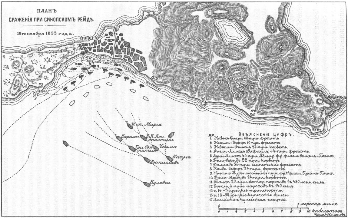 18 (30) ноября 1853 года к бухте подошла крымская эскадра под командованием вице-адмирала Павла Степановича Нахимова. В ее состав входили шесть линейных кораблей, два фрегата и три парохода.