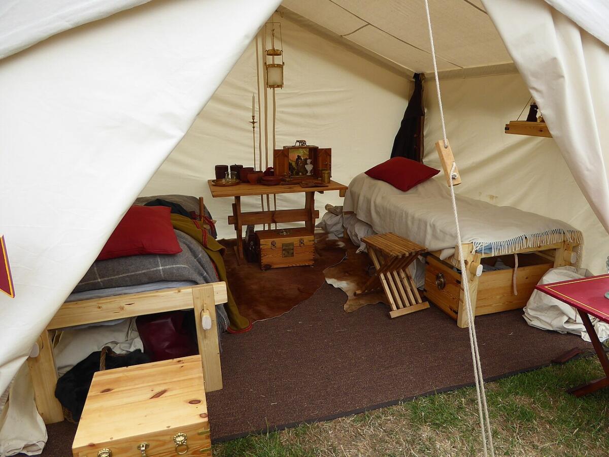 В походе жили в палатках, а в стационарном лагере для военнослужащих были казармы.