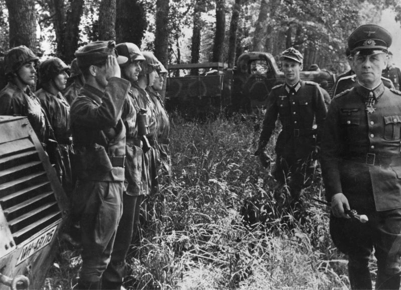 Генерал-фельдмаршал Э. Роммель инспектирует части 21-й танковой дивизии вермахта