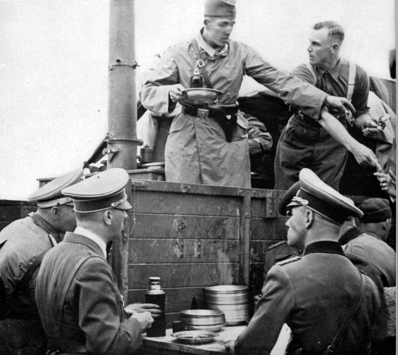 Адольф Гитлер и Эрвин Роммель у полевой кухни в Томашув-Мазовецки