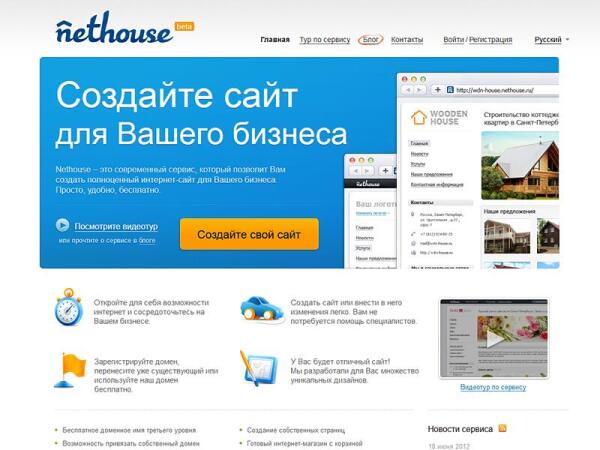 «Если Вас нет в Интернете, Вас нет в бизнесе» — с каждым годом фраза Билла Гейтса становится все более актуальной. Именно поэтому сегодня предприниматели спешат освоить просторы всемирной глобальной сети. Между тем, создание своего сайта становится для многих из них настоящей головной болью. Как сделать сайт самому? К кому обратиться? Сколько это стоит? Все эти и другие проблемы призван решить сервис Nethouse.