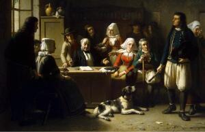 Теодор Бернард де Хёвель (Theodore Bernard de Heuvel) — бельгийский художник, родился в 1817 году, прожил 90 лет, до 1907 года. Русскому зрителю известен по одной картине — «Вскрытие завещания» (1869 год).