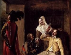Питер де Хох, голландский художник XVII века, посвятил досугу военных несколько картин. Одна из них — «Два солдата, служанка и трубач» — отображает сценку в непритязательных обстоятельствах.