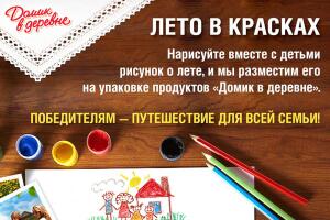 «Домик в деревне» объявляет всероссийский конкурс рисунков «Лето в красках» и предлагает семьям поделиться воспоминаниями и мечтами о деревенском лете, и принять участие в конкурсе детских рисунков на сайте www.domik-v-derevne.com. Лучшие работы украсят упаковку продукции бренда.