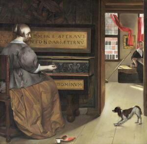 Габриэль Метсю (1629−1667) — голландский художник, портретист, жанрист. Среди его полотен одно вызывает больше вопросов, чем ответов. Это — «Женщина за клавесином» (ее название на английском языке «Lady at a Virginal»).