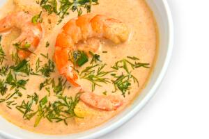 Всех рецептов первых блюд из креветок в одной статье не перечислить, поэтому остановимся на тех, что содержат кулинарный «принцип сочетания» продуктов, освоив который, можно давать волю фантазии (меня так хлебом не корми, дай пофантазировать у плиты).
