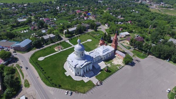 Ворота на Куликово поле, Епифань, с её тихими, незамысловатыми и одноэтажными улочками и вдруг — Красная площадь! А на площади — собор, чем-то неуловимым напоминающий питерский Исаакиевский и очень представительный для небольшой Епифани. Откуда в провинциальном городке столичный храм?