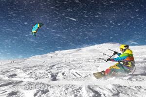 Экстремальное, но очень зрелищное спортивное мероприятие — катание по водной поверхности на особо сконструированных досках, когда спортсмен при натяжении системы строп ловит ветер и поднимается в воздух на воздушном змее.