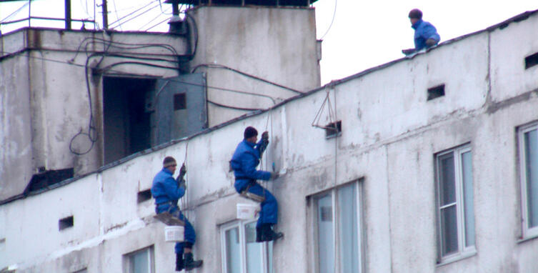 Этот праздник также близок промальпам, потому как они выполняют огромную работу по заказам коммунального хозяйства по утеплению зданий. Помимо заглавной фотографии, запечатлевшей эту работу сразу тремя промальпами, личный архив недавно пополнился новыми свежими фото с работой промальпов уже на другом, более дальнем здании, на котором они также утепляют межпанельные швы: