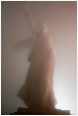 Наконец-то прислали фото Мамы-Родины в тумане... Судите сами.