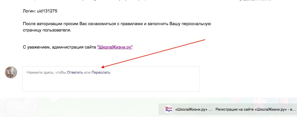 Чтобы переслать письмо, надо в конце письма нажать кнопку "переслать", я отметила ее на фото.