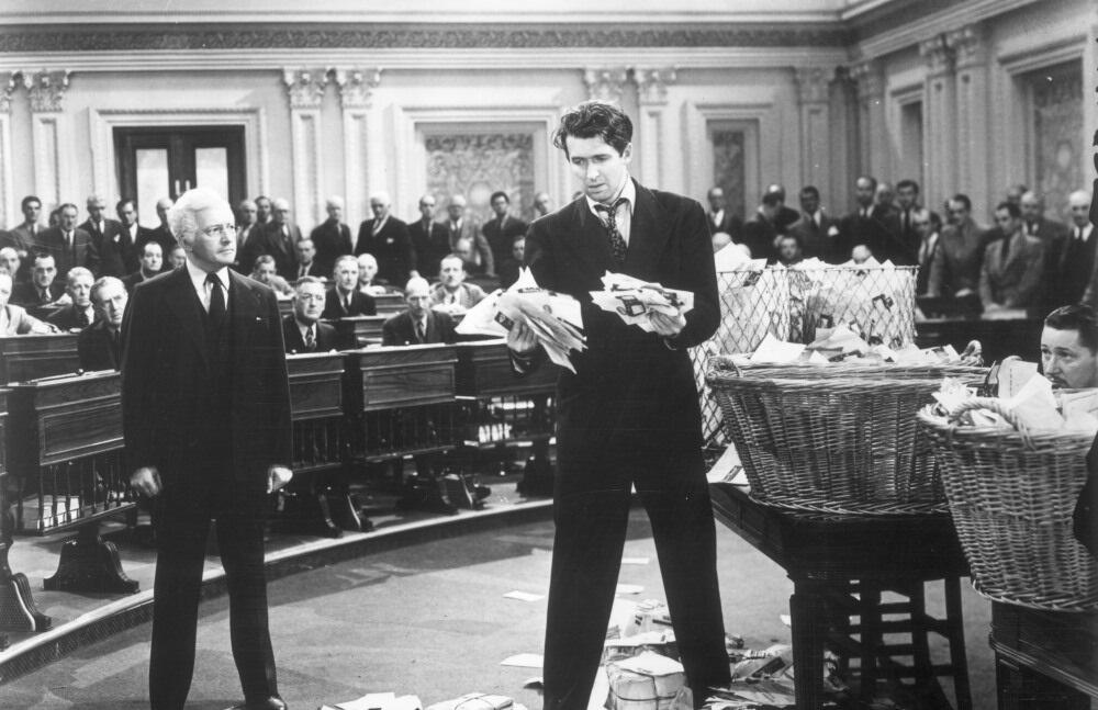 В фильме «Мистер Смит едет в Вашингтон», едва главный герой попадает на Капитолийский холм, за кадром под торжественную музыку звучат высокопарные слова о декларации независимости, конституции США, жизни, свободе, праве на счастье, «правительстве народа и для народа» — и пришедшие туда же американцы в благоговении снимают шляпы.