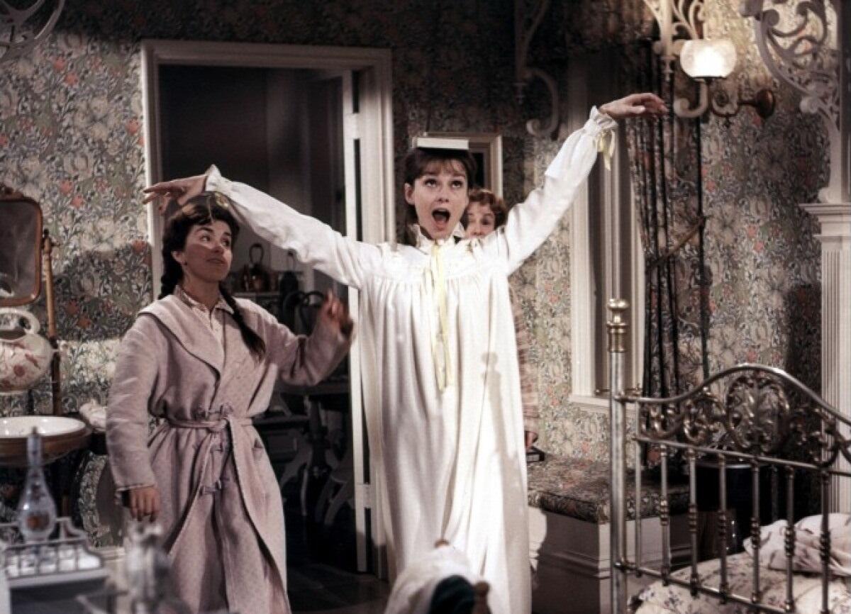На экране нам снова демонстрируют двух совершенно разных женщин в исполнении Одри Хепберн, одна из которых — замызганная и вульгарная уличная торговка, другая — утончённая светская леди. Которая же из них в итоге одержит верх? Естественно, вторая — ведь именно такая женщина радует глаз, именно её желают зрители и ей завидуют зрительницы.