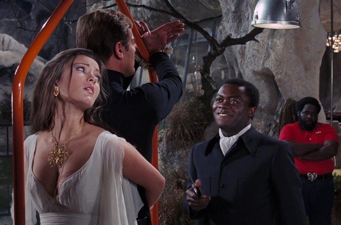 Что привлекает особое внимание в фильме? Во-первых, тот факт, что и сам главный злодей, мистер Биг, и его главные подручные (кроме Солитер, которая перешла на сторону Бонда) — афроамериканцы, да и Гарлем в фильме показан как территория, контролируемая мафией и враждебная для белых людей. В наше время, 50 лет спустя, такой сюжет фильма наверняка вызвал бы возмущение прогрессивной общественности.