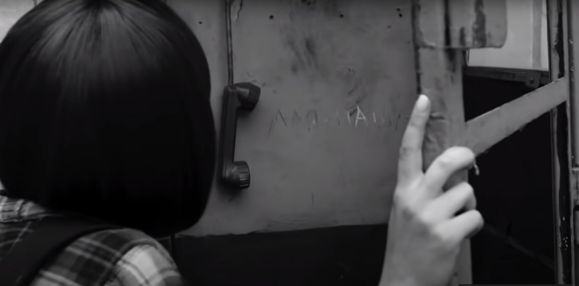 Чем больше темнело, тем хуже становилось Павлу. Скрываясь от патруля, ребята забрались в телефонную будку, где нацарапали такие наивные и знакомые каждому влюбленному слова: ПАША+АЛЯ=ЛЮБОВЬ. Эта надпись еще появится в конце фильма.