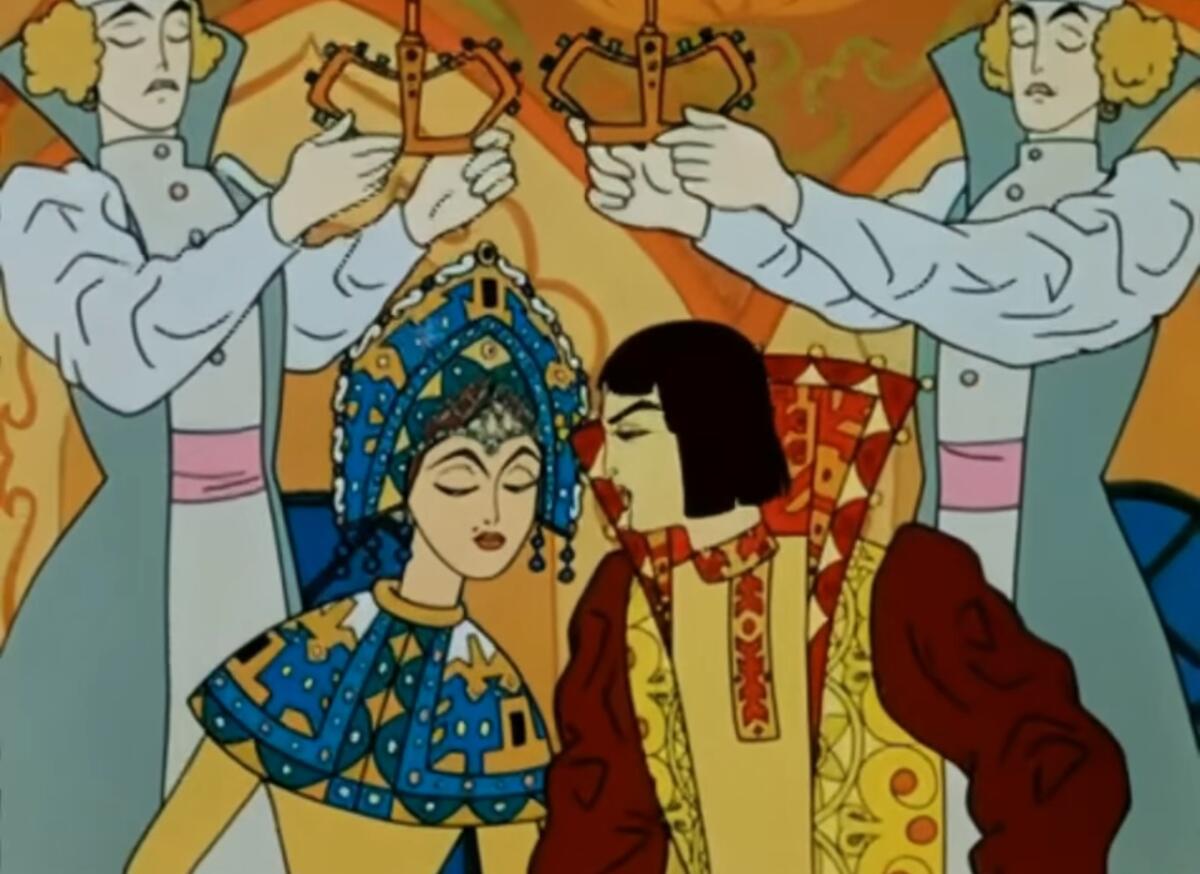 В финале мультфильма Алексей и Ирина сыграли свадьбу, а Ивана царь назначил воеводой. Но солдат отправился в поле сеять хлеб.