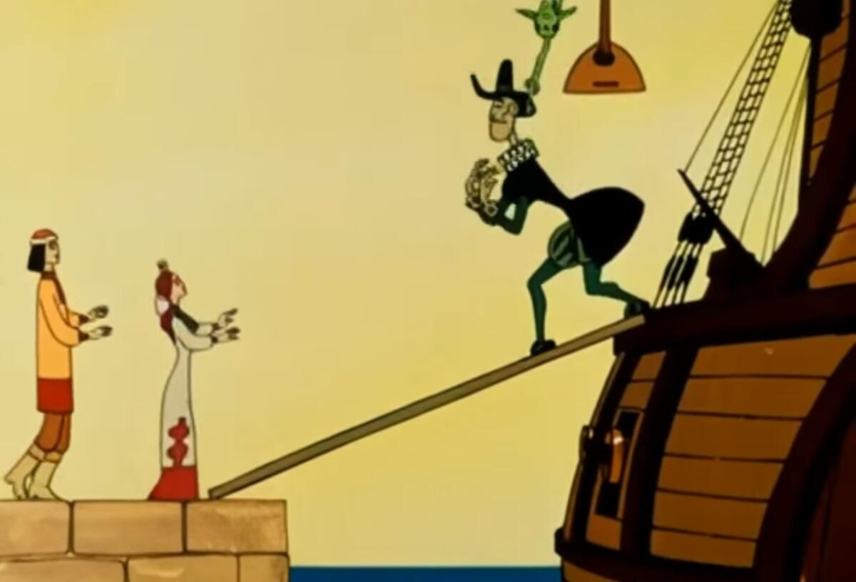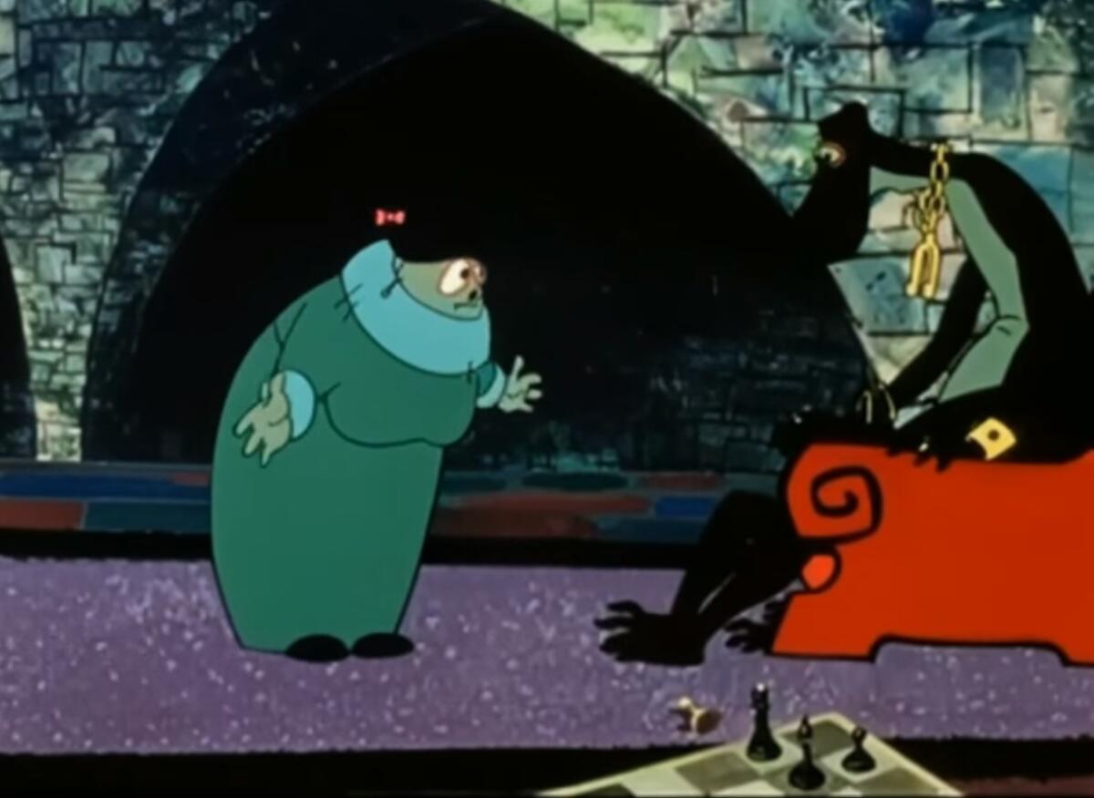Он называется «Последняя невеста Змея Горыныча». У заглавного героя не три традиционные головы, а всего одна, при этом много лап. Он сидит у себя дома и скучает. Служанка советует Змею Горынычу жениться. Дракон отказывается. Но позитивная служанка приносит хозяину зеркало, которое показывает злодею девушку Ирину, дочь царя Аникея.