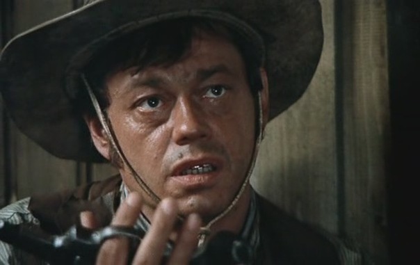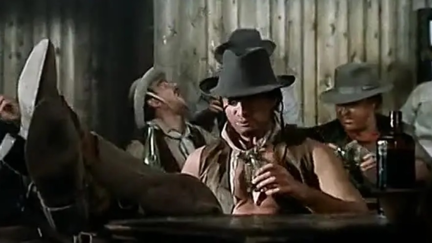 У героя Леонида Ярмольника в первоначальном варианте была лишь одна фраза: «Сдаётся мне, джентльмены, это была… комедия». Но с его лёгкой руки в картину вошли эпизоды, где ковбой не может выпить и с ногами на столе.