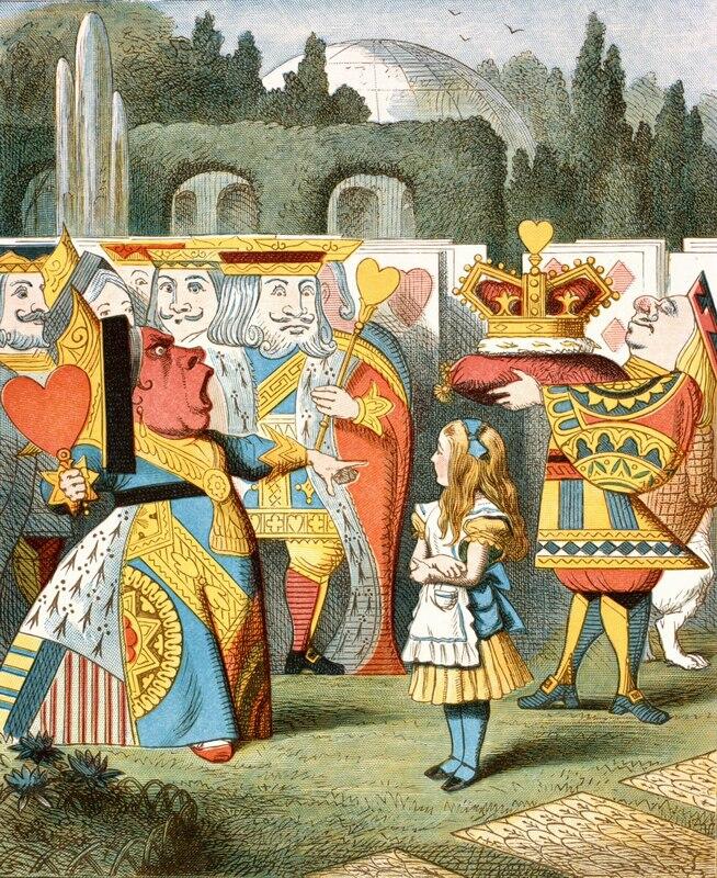 — Кому вы страшны? — сказала Алиса. (Она уже выросла до своего обычного роста.) — Вы ведь всего-навсего колода карт!
