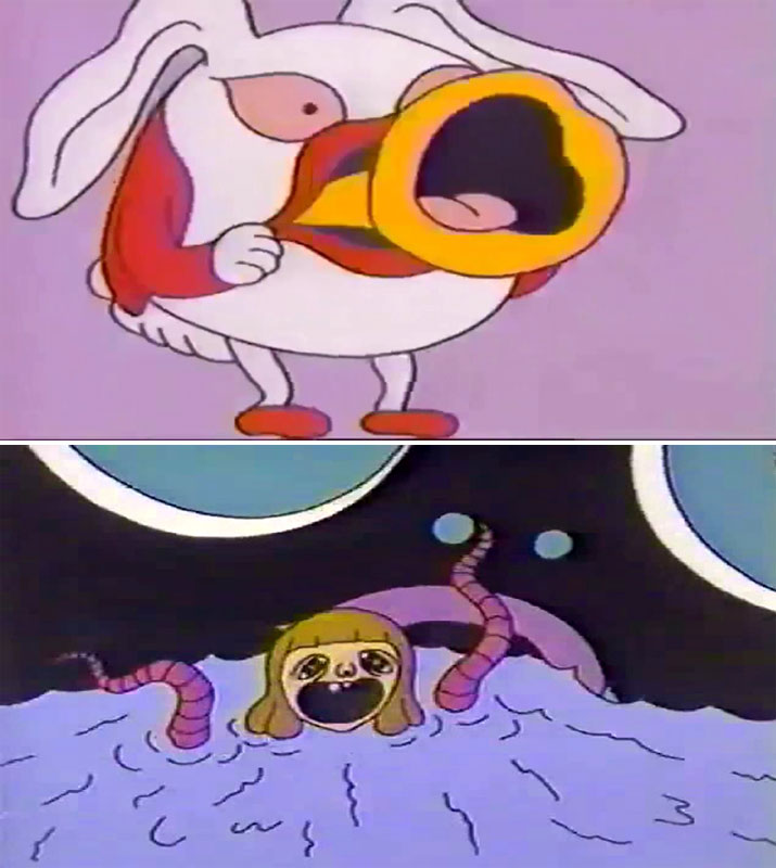 К подобным провокационным творениям можно отнести и мультфильм 1982 года, снятый режиссёром Винсом Коллинзом в содружестве с японским аниматором Мивако. О концепции мультфильма говорит уже его название «Malice in Wonderland» («Злоба в Стране чудес») — остроумный каламбур, до этого уже не раз использованный в рок-музыке 1970-х (см. альбомы таких групп, как PAICE, ASHTON & LORD и NAZARETH).