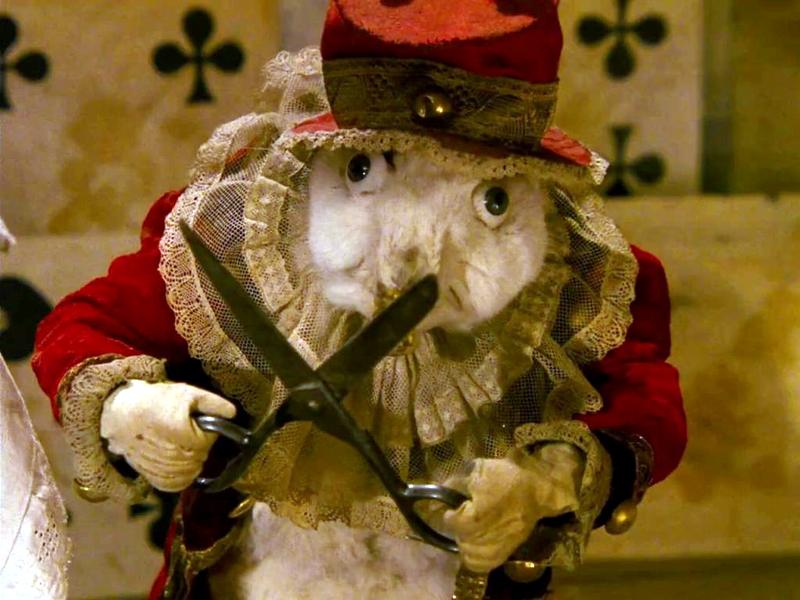 Если в сказке Кэрролла обитатели Страны чудес агрессивны только на словах, то в фильме Шванкмайера они по-настоящему жестоки. Наибольшую опасность представляет Белый Кролик, который постоянно угрожает Алёнке и отрезает ножницами головы других персонажей.