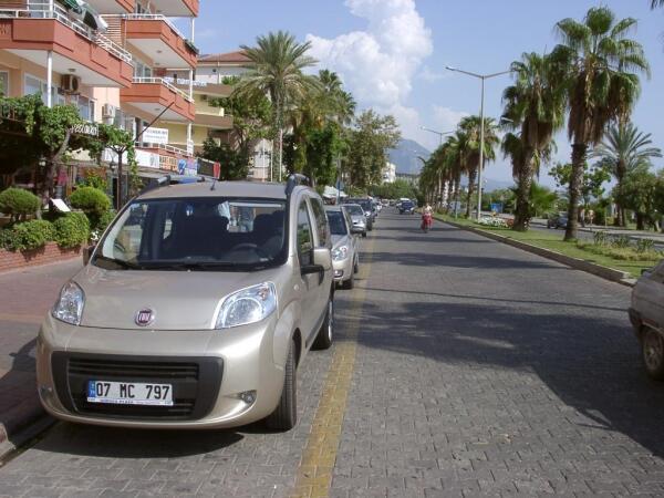 Олег Антонов, вышел и специально для вас сделал фото. Обратите внимание на сплошную желтую в двух метрах от тротуара. Она вдоль всех более менее значимых улиц города. Это зона стоянки. В кадр не попала табличка с правилами. 15 мин бесплатно. Далее в среднем лира за час. Действует с 9-00 до 22-00. Работает это так. Ставишь машину и уходишь. Подходит парковщик и крепит под щетку квиток с номером машины м временем. Подходишь уезжать - подходит парковщик и дает чек с номером машины, время прибытия\убытия, сумма. В руках у него чудесный аппарат - даже номер машины считывает сам. Если парковщика нет - уезжаешь без проблем. Если полоса свободна по ней можно спокойно ездить. Если полоса белая, это бесплатная стоянка. Такая вдоль набережной, около парков. На второстепеных улицах стоянка в обычном порядке. Проблемы парковки практически нет. В наших городах сейчас вдоль всех более менее значимых улиц полосы движения общественного транспорта. Это сделано с единственной целью - превратить в нарушителей и тех кто случайно попадает на эту полосу, и тех кто ищет парковку, и тех кому трудно разминуться на зауженной дороге. Сделано все это, естесственно, с подачи гаи. Вот вы, например, отдали бы парковщикам треть улицы c которой ежегодно собираете миллиард наличных? Сомневаюсь я. Пусть уж лучше дорогу кто-то строит, чинит, убирает, пусть нарушителей будет много о о, а милиард лучше мой карман. Так ведь?