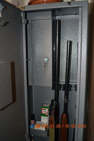На предыдущем снимке оружейный сейф уже открыт. И это совсем иной сейф. На 1 ствол и мной он предназначен для хранения боеприпаса.