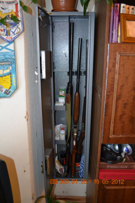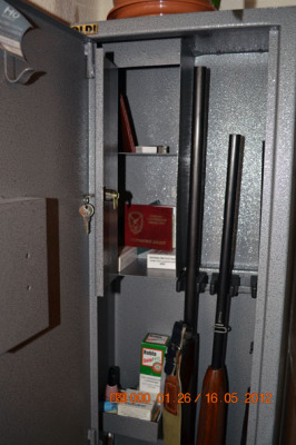 И последний снимок. На нем мой маленький арсенал, который, очень надеюсь, в будущем пополнится нарезным карабином фирмы Чешска Зброёвка под 243 Win. И тогда нужно будет купить еще одни сейф на 3-4 нарезных ствола. Вы правы абсолютно - чем больше сейф, тем меньше он стоит в денежном выражении. О проблеме его размещения я пока не думал.