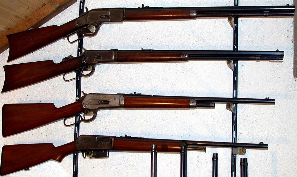 Тот самый «Винчестер», который дал название целому классу оружия, перезаряжаемому специальным рычагом, располагающимся под прикладом. Специалисты называют такое оружие «перезаряжаемое скобой Генри». Именно с «Винчестера» и скопирован внешний вид южнокорейской пневматической винтовки «Сareer III 707».