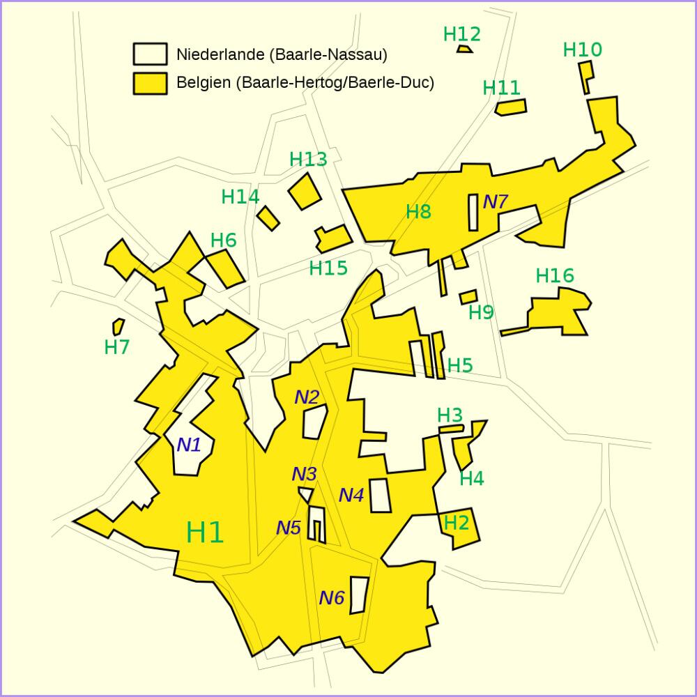 Сами жители туристического города прекрасно знают, где и как проходит граница у них между двумя государствами. Выучили все до мелочей и впросак не попадают. Хотя ситуация чрезвычайно запутанная — ведь 24 части города, принадлежащие Нидерландам, расположены внутри части, принадлежащей Бельгии. Это просто отдельные здания, окруженные со всех сторон территорией Бельгии, при этом часть здания принадлежит этой стране.