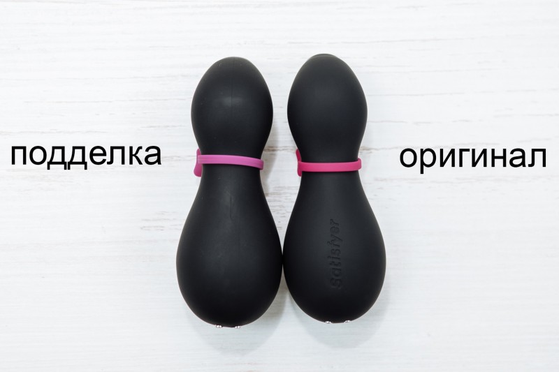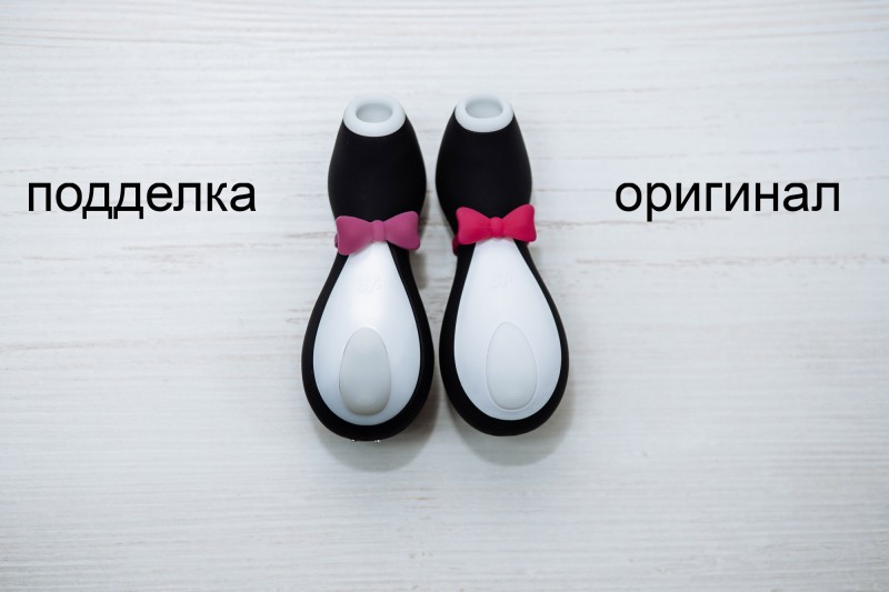 Как понять, что перед вами китайская подделка, а не настоящий Satisfyer? Будьте предельно внимательны! Сейчас в продаже на 50% оригинальных пингвинов Сатисфаер приходится 50% поддельных. Чтобы не выбросить деньги на ветер, прежде всего, посмотрите на цену. Если вы видите, что игрушка стоит дешевле 3000 рублей, перед вами однозначно подделка! Учитывая закрытые границы, сложности с прямыми поставками из Германии и высокую себестоимость товара даже без наценок, оригинальный вибратор не может быть настолько дешевым. Хотя, конечно, и высокая цена не гарантирует качества. Если бы у Сатисфаера была специальная защита, как у JAZZER PENGUIN PRO, тогда было бы проще.