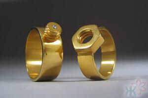 После этого священник берет кольцо жениха и трижды произносит: «Обручается раб Божий (имя) рабе Божей (имя невесты)», каждый раз творя крестное знамение над головой жениха, и надевает ему кольцо на безымянный палец правой руки. Затем берет кольцо невесты и трижды произносит: «Обручается раба Божия (имя) рабу Божиему (имя жениха)», осеняя крестным знамением голову невесты, и надевает ей кольцо. Затем жених и невеста, в знак того, что отныне они неразлучны, трижды меняются кольцами. Обмен кольцами может производить и сам священник.