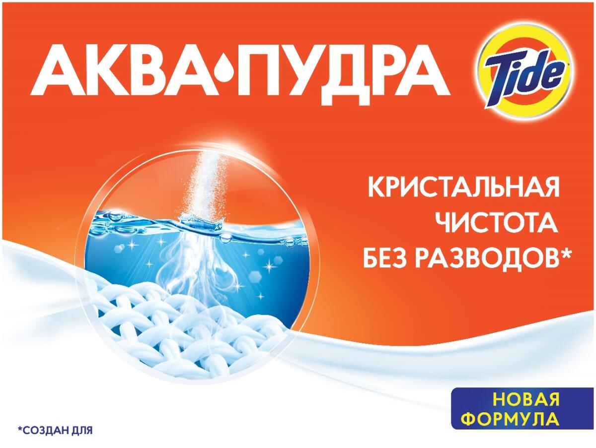 Компания Procter & Gamble перезапускает на российском рынке всю линейку стиральных порошков Tide. Tеперь в их основе новая формула «Аквапудра». Она растворяется, только коснувшись воды, и моментально активируется, что обеспечивает безупречную чистоту без разводов. Tide Аквапудра производится компанией Procter&Gamble на заводе в г. Новомосковск, Тульская область. Инвестиции в разработку формулы и оснащение производства в Новомосковске составили более 2 млрд руб за 2019 год.