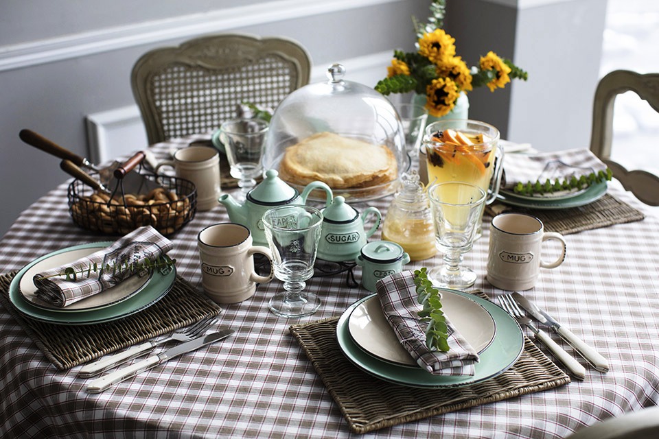 - А теперь немного конкретики: если у вас круглый стол 90 см в диаметре или квадратный с такими же сторонами, то берите скатерть с диаметром или длиной стороны 140 см. А для прямоугольного или овального стола 90×150 см — скатерть 140×190 см.