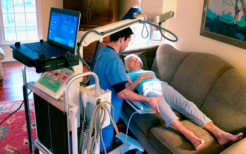 Проведение рентгенологического обследования на дому стало возможным с появлением более компактных цифровых рентген-аппаратов. Они по-прежнему достаточно габаритные и тяжелые, но все же их можно транспортировать в автомобиле и поднимать в квартиры.