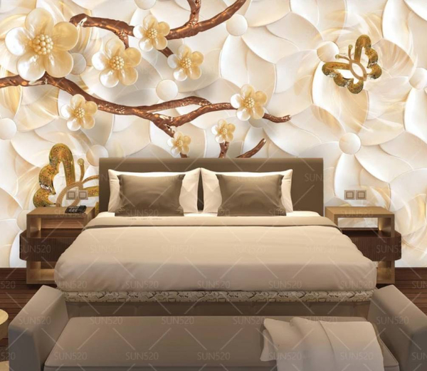 Обои с 3д эффектом — не лучший выбор для маленьких комнат по уже озвученным причинам. Поэтому, если есть желание поклеить 3д обои в спальню, нужно брать во внимание необходимость больших объемов помещения.