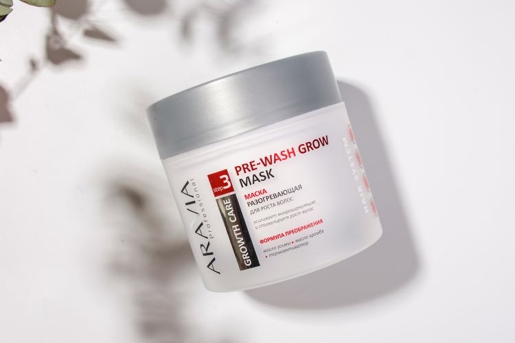 Когда уход подобран, рекомендуется добавить для стимуляции волос специальную маску. Например, у ARAVIA Professional есть PRE-WASH GROW MASK для роста волос. Она разогревает кожу и стимулирует кровообращение в клетках. Благодаря этому волосяные фолликулы лучше питаются — и волосы растут активнее.