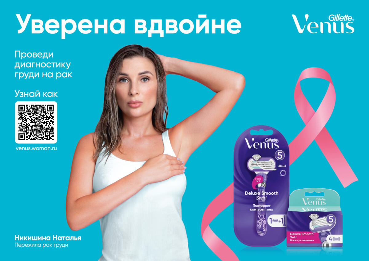 Во всемирный месяц борьбы с раком груди бренд Venus, один из ведущих производителей средств для бритья и ухода за телом, запускает вторую волну социального проекта «Уверена вдвойне» и напоминает, что уверенность в себе зависит не только от внешнего вида, но и от состояния здоровья.