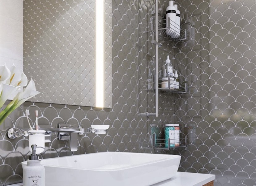 Появилась также плитка, состоящая из «арабесок» и «рыбьей чешуи», ставшая оригинальным прочтением хорошо известного и популярного материала для ванных комнат. Сплетающиеся на вертикальных поверхностях причудливые и непрерывные узоры из многоугольников и прочих конфигураций во многом способствуют тому, чтобы оформление было целостным и воспринималось как можно более гармонично.