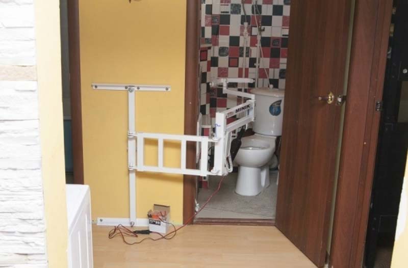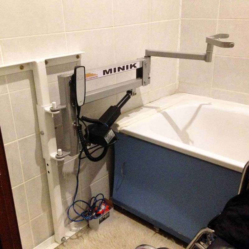 Но есть настенные подъемники, которые дома применять можно. Это специальные варианты для ванны и туалета. Для маленьких санузлов, куда не помещается передвижной подъемник, они оптимальный вариант и часто единственно доступный.