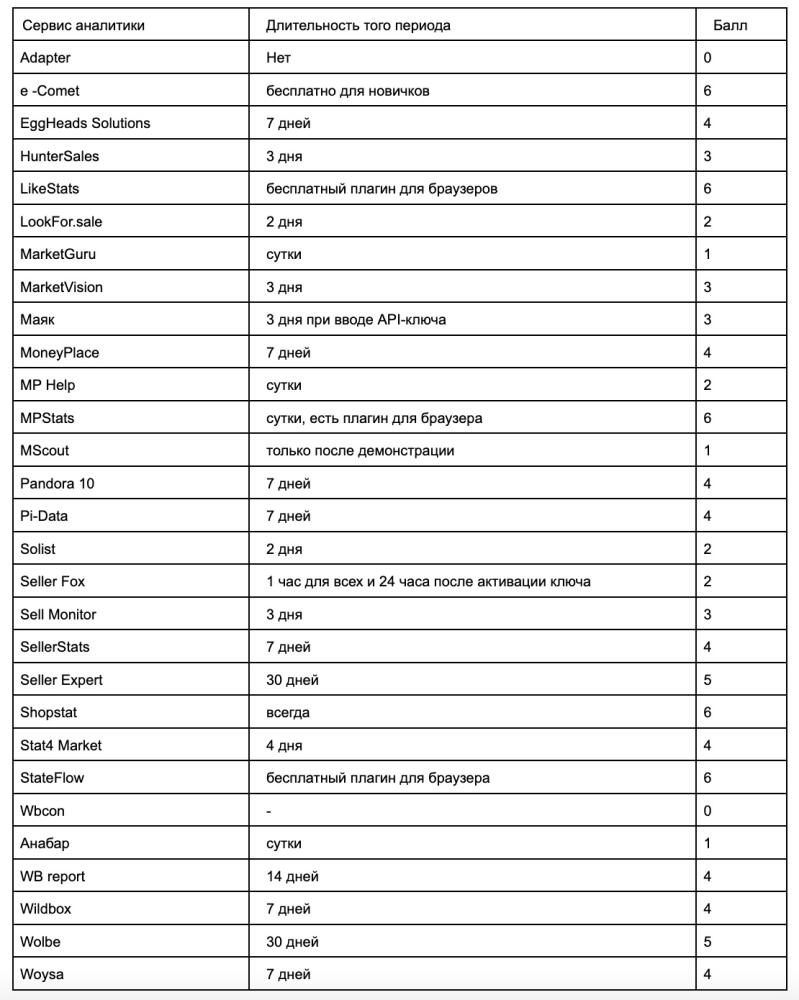 +3 балла заработал MPSTATS. Однако важны не столько площади, сколько глубина анализа. Например, SellerFox анализирует 6 платформ, но анализ настолько поверхностный и мало применимый, что начислять за это дополнительные баллы было бы нечестно по отношению к остальным.