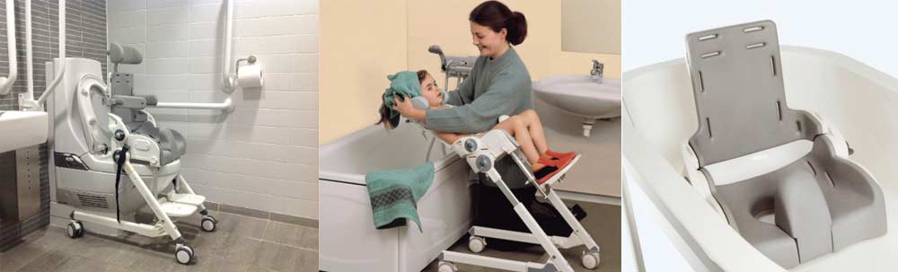 Это детское кресло-туалет, но с возможностью трансформации в приспособление для купания детей с ДЦП. В частности, можно докупить присоски и, сняв сиденье, установить его на дно ванны. Сиденье имеет абдуктор и ремни для фиксации ребенка в сидячем положении, что позволяет не только быстро выполнять гигиенические процедуры, но и подолгу купаться.