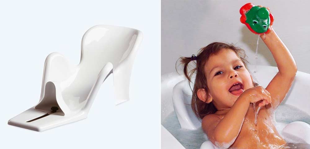 Жесткое пластиковое сиденье с абдуктором и присосками. Устанавливается на дно ванны и обеспечивает ребенку положение полулежа, в котором его достаточно удобно мыть.