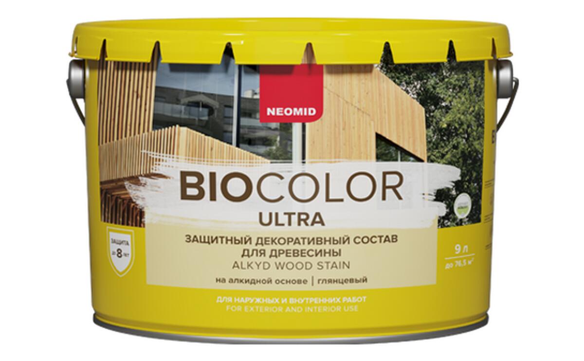 От дождей, снегов и морозов дерево защитят натуральные микровоски в составе NEOMID BIO COLOR ULTRA и его лаковая текстура.