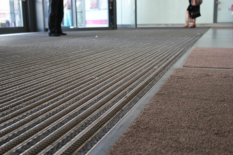 Некоторые организации не могут производить уборку, поскольку поток людей остановить физически невозможно. Например, станции метро или магазины шаговой доступности. Единственным выходом является оборудование входной зоны специальным грязезащитным ковриком, который способен удерживать жидкую грязь, снег, пыль, даже мусор.
